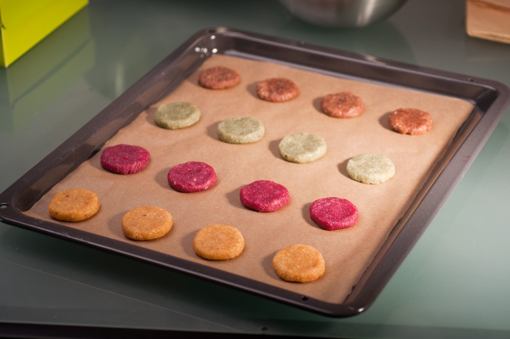 От четирите топки тесто оформяме плоски кръгчета, които поставяме в дехидратор или във фурна на 40 С, и изсушаваме за 2-3 часа.