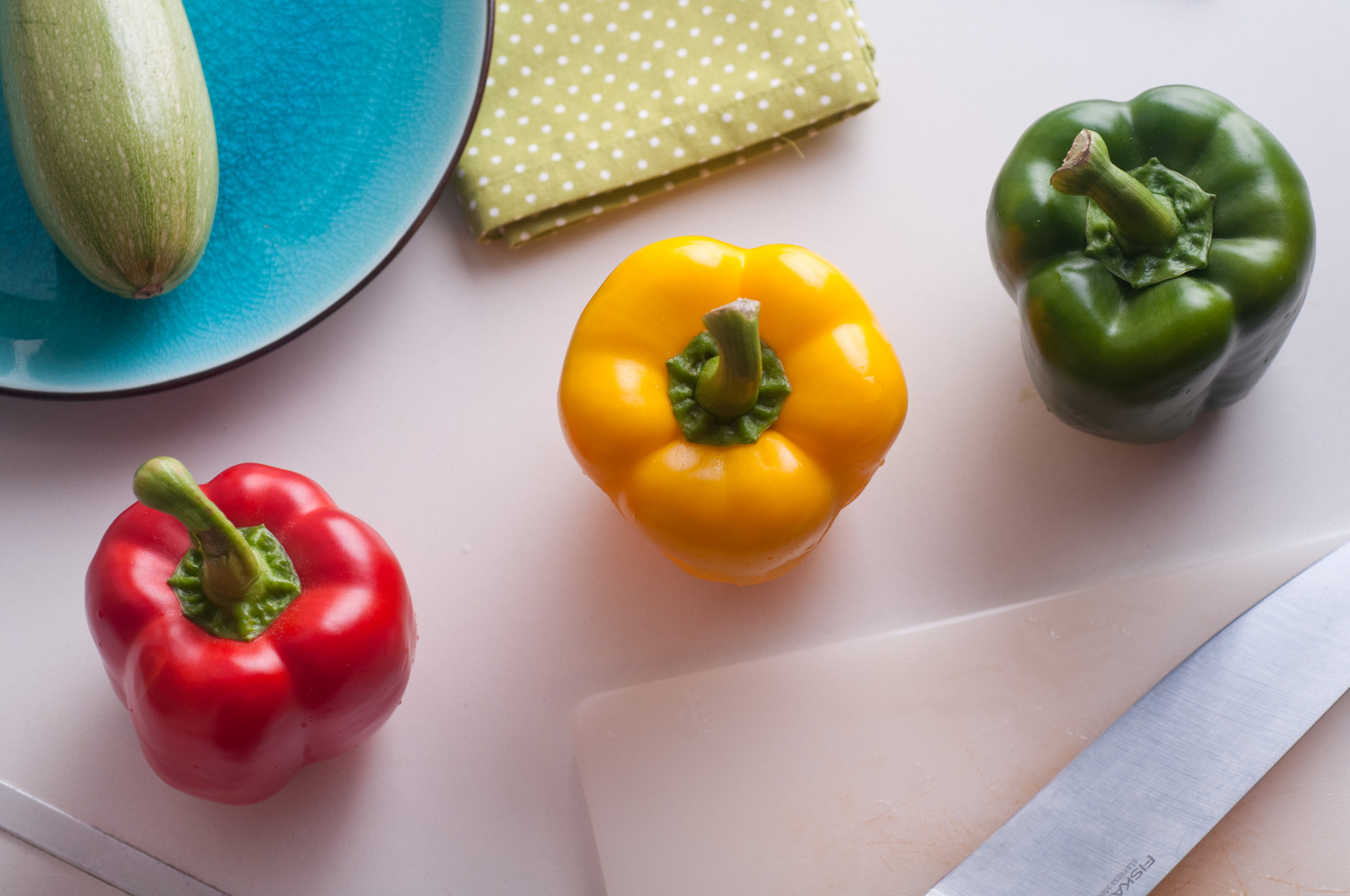 червена, зелена и жълта чушка