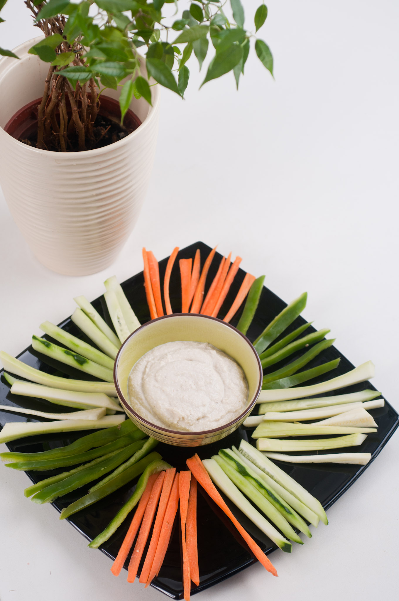 Всички съставки се пасират в кухненски робот или блендер до получаване на гладка смес. Водата се добавя постепенно, като се следи за желаната гъстота. Можете да добавяте подправки по свой вкус – босилек, розмарин, магданоз и така ще имате различен вкус всеки път. Аз лично добавям малко смлян кимион – става страшно вкусно.