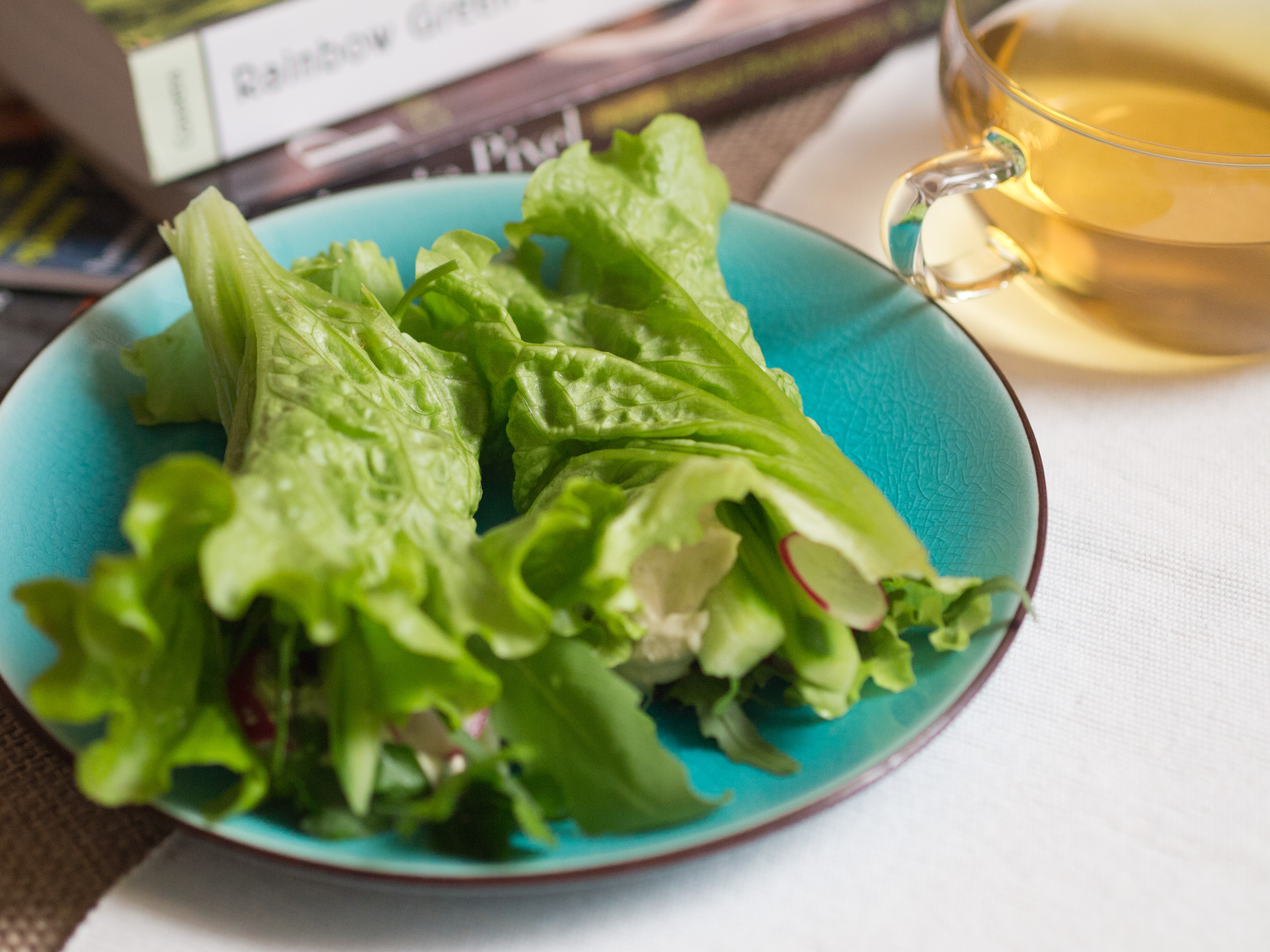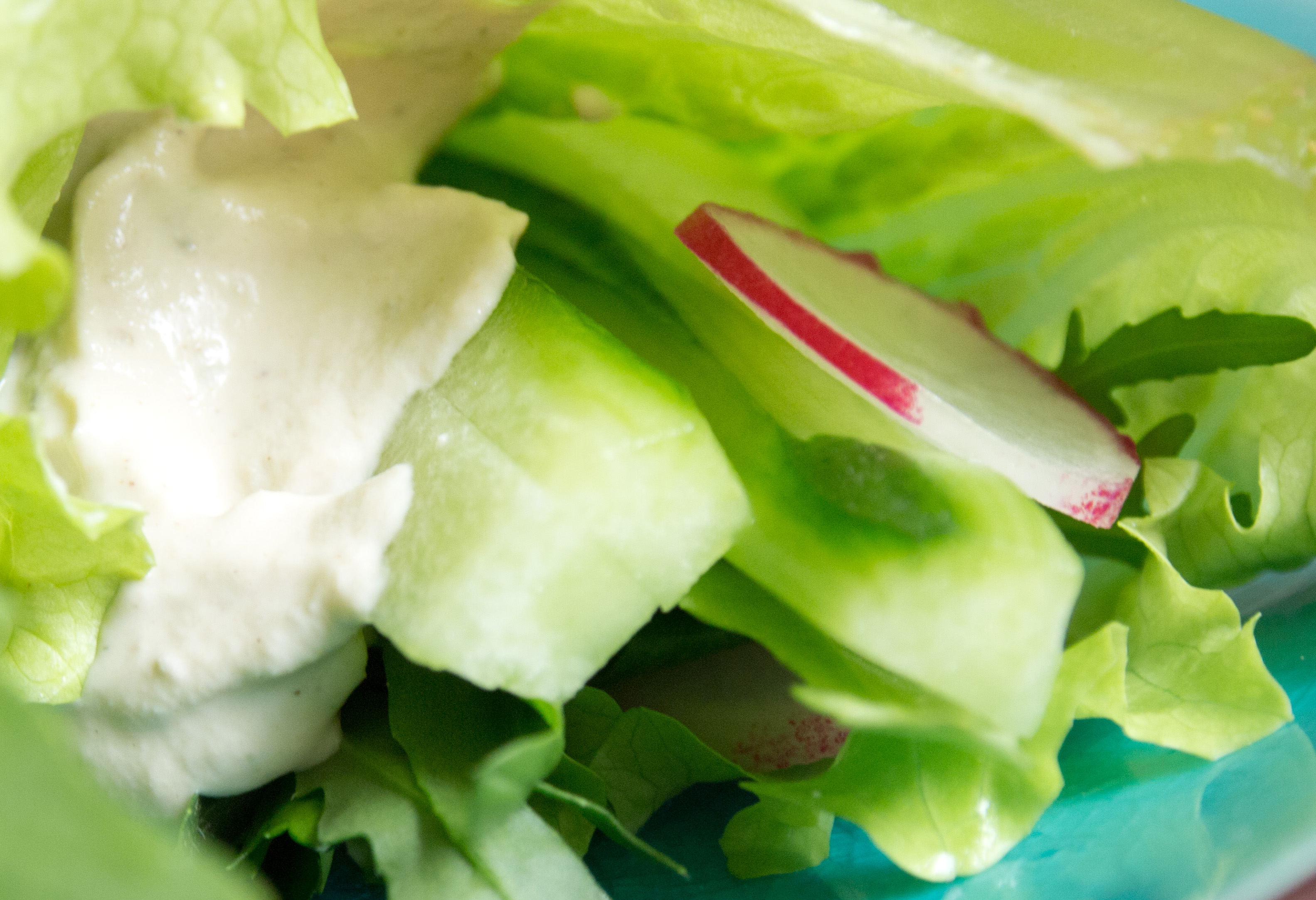 Измийте и нарежете зеленчуците за ролцата. Върху двете салатени листа разпределете нарязаните зеленчуци и по малко от кашу соса. Завийте добре и се насладете на свежия вкус 🙂